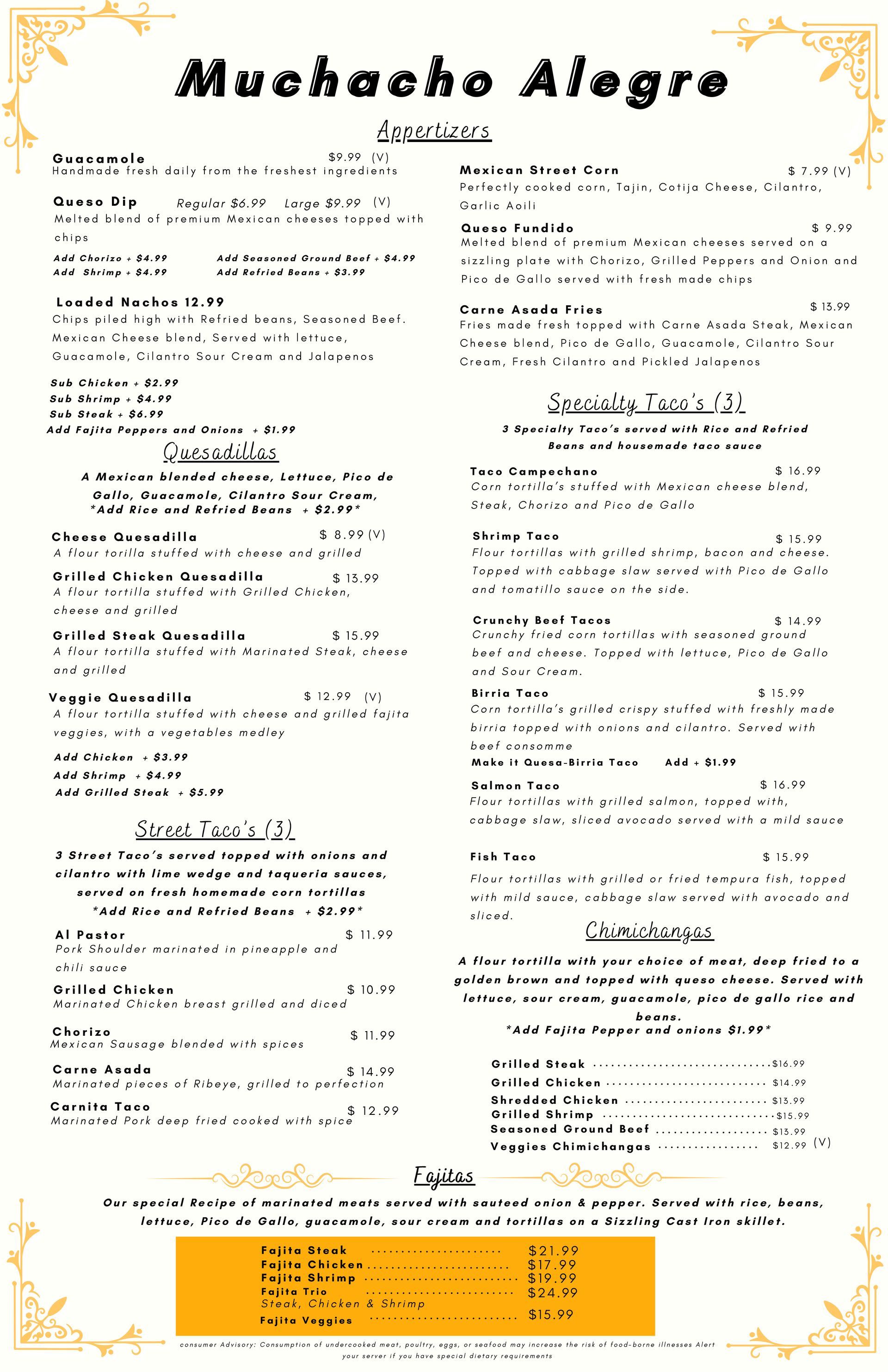 At Muchacho Alegre Mexican Restaurant, we take pride in delivering more than just meals—we serve up moments. Whether you're stopping in for a casual lunch, planning a family dinner, or ordering takeout for the big game, our food is handcrafted to delight.